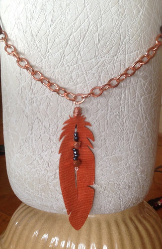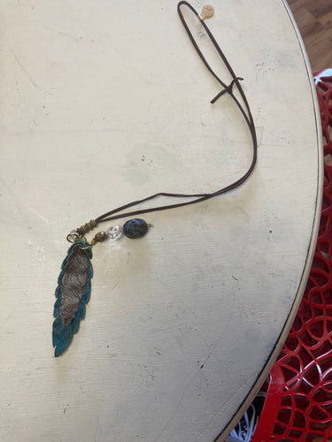 feather leather and beads necklace
