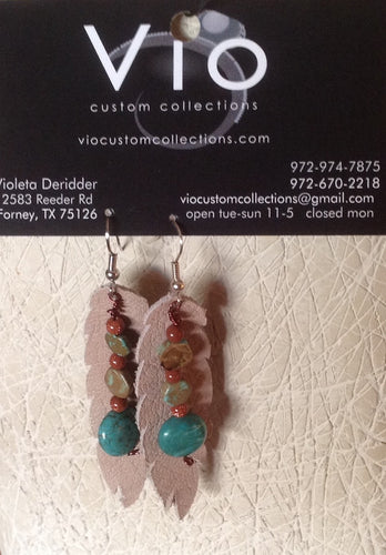 feather leather with beads earrings