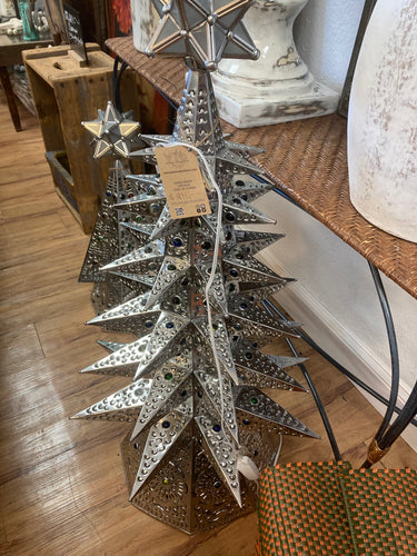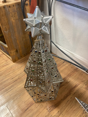 Lighted Pierce Tin Christmas Tree Silver 3ft
