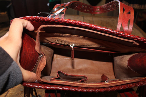Maroon/Red Hand Tooled Leather Purse