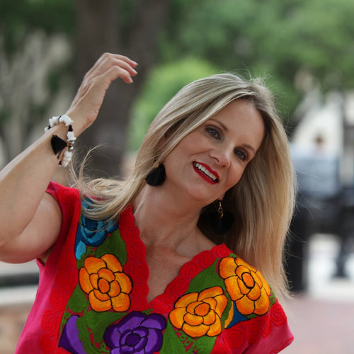 Mexican Hot Pink Top with Floral Embroidery